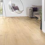 Haro Plaza Sand White Markant 536545 has a single strip of oak covering a solid spruce strip middle layer. The long edges have been bevelled as have the short ends and have the Top Connect jointing system. The oak wear layer is Deep brushed and finished with the matt lacquer surface Finish.